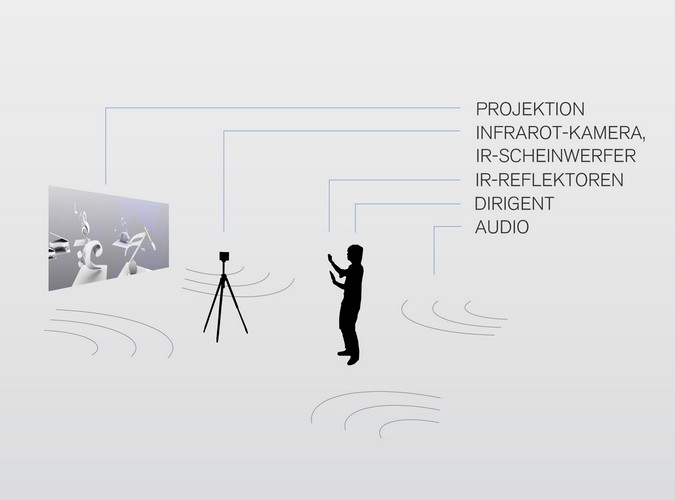 Mit dem Virtuellen Dirigenten wurde eine Anwendung geschaffen, mit deren Hilfe man sich eine eigene Klangwelt zusammenstellen, Klang-spuren abmischen oder einfach nur mit Ton und Raum experimentieren kann.