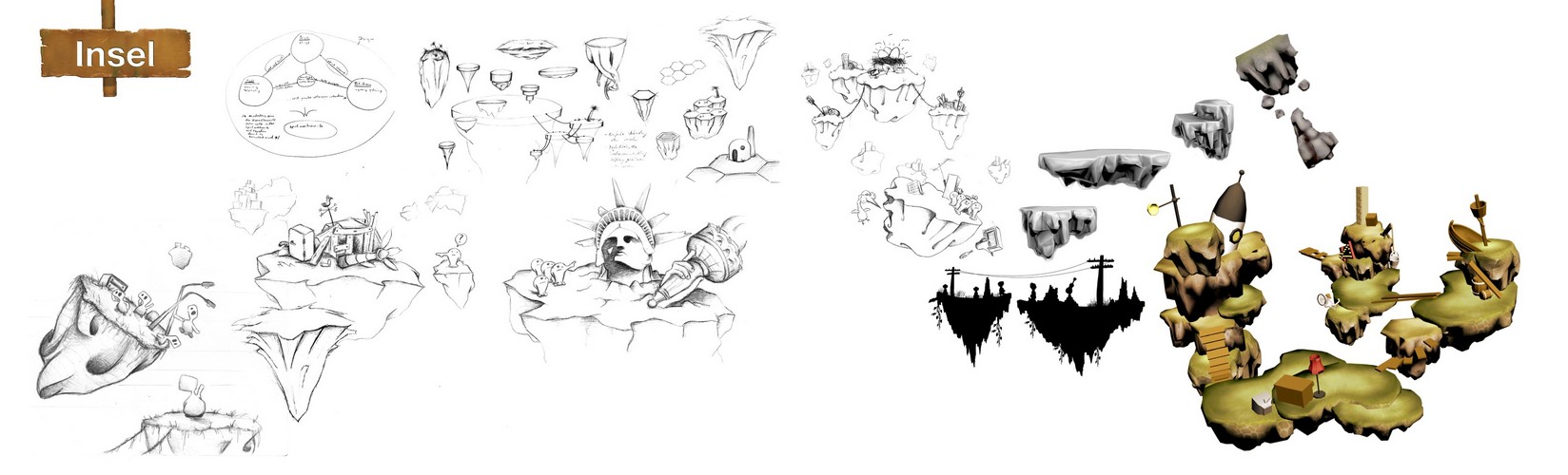 Unser Ziel war es, den kompletten Spieleentwicklungsprozess zu durchlaufen – vom Grobkonzept über Skizzen, Asset-Erzeugung (Modellierung, Texturierung, Animation, Vertonung), Interface-Design, und parallel dazu Level-Design, jede Menge Programmierung, Tests und Marketing. Außerdem musste für fünf Personen Verwaltung, Projekt management und Zeitplanung gemacht werden.