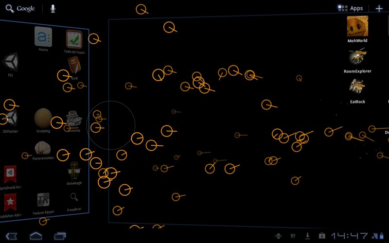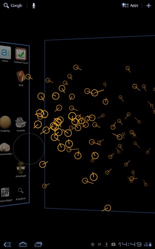 Swarmer ist ein Live-Hintergrund für Android-Geräte. Abstrakte Elemente bewegen sich als Schwarm über den Bildschirm.